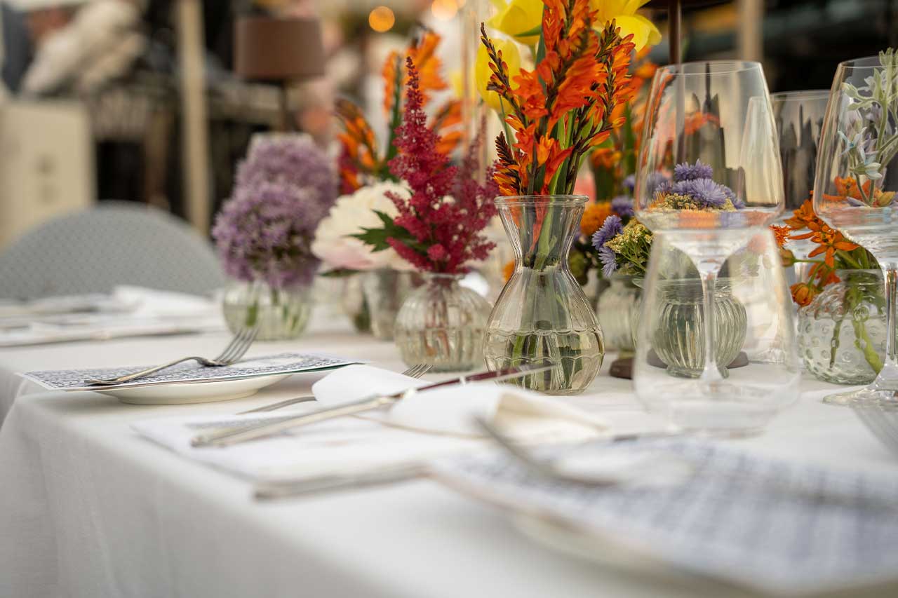 Fare in modo che l’evento risulti perfetto sotto ogni aspetto, invece, è il nostro compito! In quest’occasione, abbiamo scelto di accompagnare lo stile caprese della location con una mise en place elegante e colorata, fatta di tavolate semplici impreziosite da fiori variopinti.